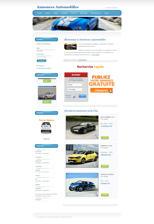 Technologies : XHTML, CSS, PHP, MYSQL, Javascript, JQuery, Photoshop.